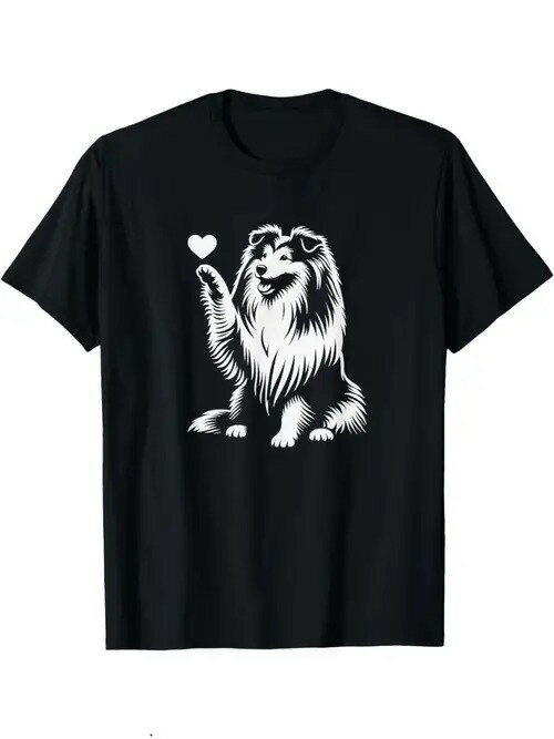 スコティッシュ・シェパード(コリー)のビーハートがプリントされた200gコットンTシャツ。